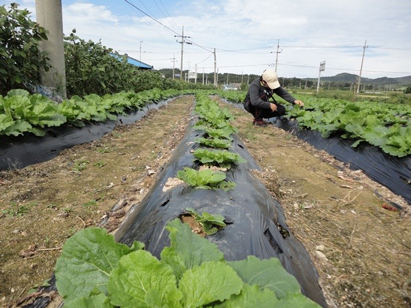 배추밭에서 청벌레 잡고 있었어요..